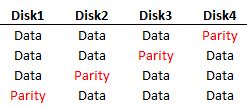 But now we assume that these disk are in a RAID setup. We can’t get this maximum amount of IOPS because some sort of calculation needs to be done to write data to the disk so that we can recover from a drive failure. To illustrate lets look at an example of how parity is calculated.