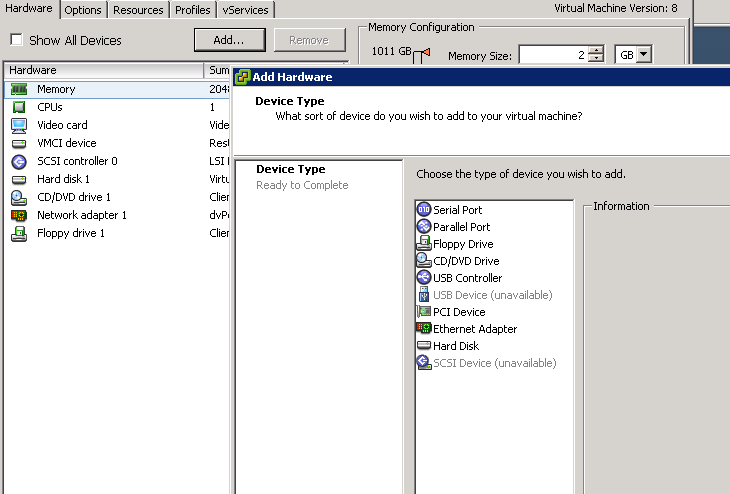 The last step to setup the passthrough is to add the device to a virtual machine. To do this we’ll add a device much like we add any other device to a VM. Right click the VM and choose edit settings. The click Add… and chose the PCI device. NOTE: your VM might need to be powered off to add a PCI device.