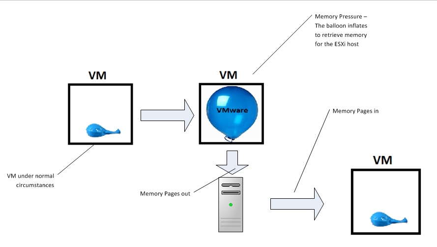 Memory that is allocated to a virtual machine might not all be actively used. Think about it, if 4 GB is assigned to a machine, the applications may only be using 2GB of it actively. As far as an ESXi host is concerned though, 4GB of memory is basically off limits because it’s assigned it to a VM. VMware ballooning basically consists of the host asking for some of that memory back.