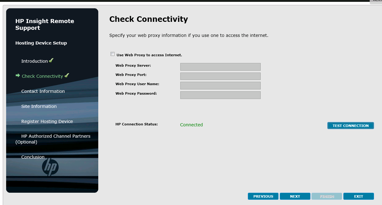 The second wizard will be to setup the host. This includes things like making sure you have connectivity to HP’s site.