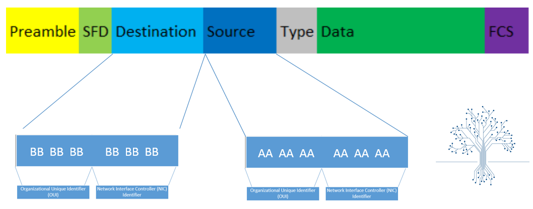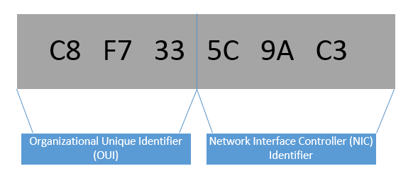 Before we discuss how machines on the same LAN segment communicate, we need to understand what Media Access Control (MAC) addresses are. A MAC address is the physical address of a network adapter. These are 48 bit addresses that are expressed as 12 digit hexadecimal notation and are unique to each network adapter. Each manufacturer has an assigned range that they are to use for their first 24 bits, this is known as the Organizationally Unique Identifier (OUI). The second 24 bits are known as the Network Interface Controller (NIC) specific and must be unique within that vendor’s range. Keeping these ID’s unique is imperative for successful LAN communication.