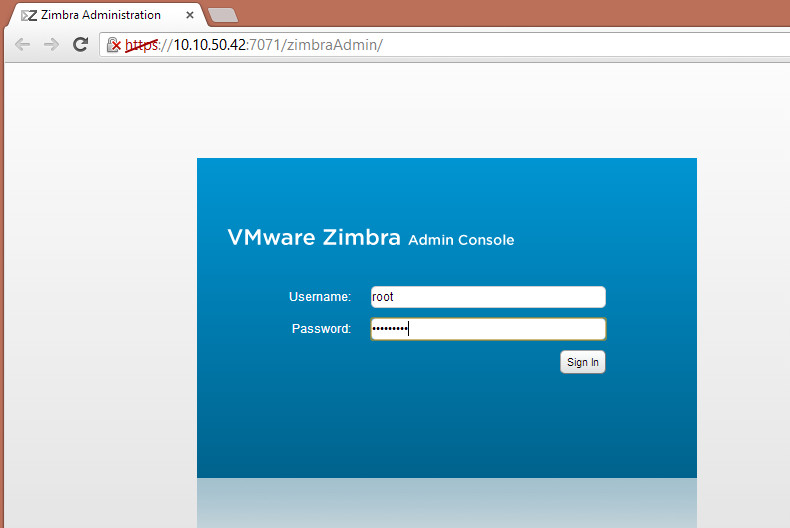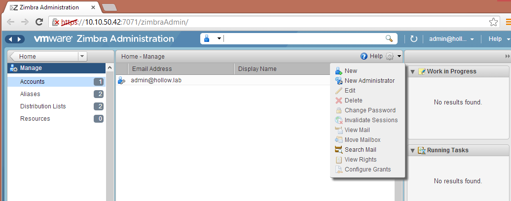 When the setup finishes, you can go to the admin console to setup some users, mailboxes, email addresses etc. Be sure to log in with your new password, and not the default vmware password.