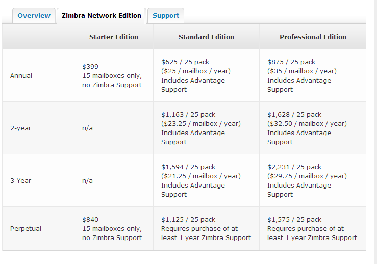 If you’re looking to deploy an on premises mail server (as opposed to a SAAS option like Office 365 or Google Apps) and aren’t satisfied with the old standby of Microsoft Exchange, check out Zimbra. If you’re still not convinced, show the pricing to your CIO and let him decide. It’s a pretty decent alternative and the pricing may just make better sense for your organization.