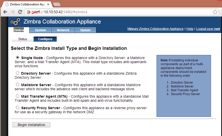 The install gives you some options based on scalability. I only wanted to try it out so I picked the single server option. But, if you were deploying this for a larger environment, the components could be split up.