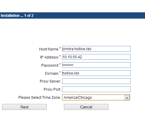 The installation was very simple. Go to the Zimbra free trial site and enter the obligatory contact information to retrieve your installation bits and trial license. The installation comes in either a server edition or a VMware OVF file. I chose the OVF file for my VMware home lab since it was easy :)