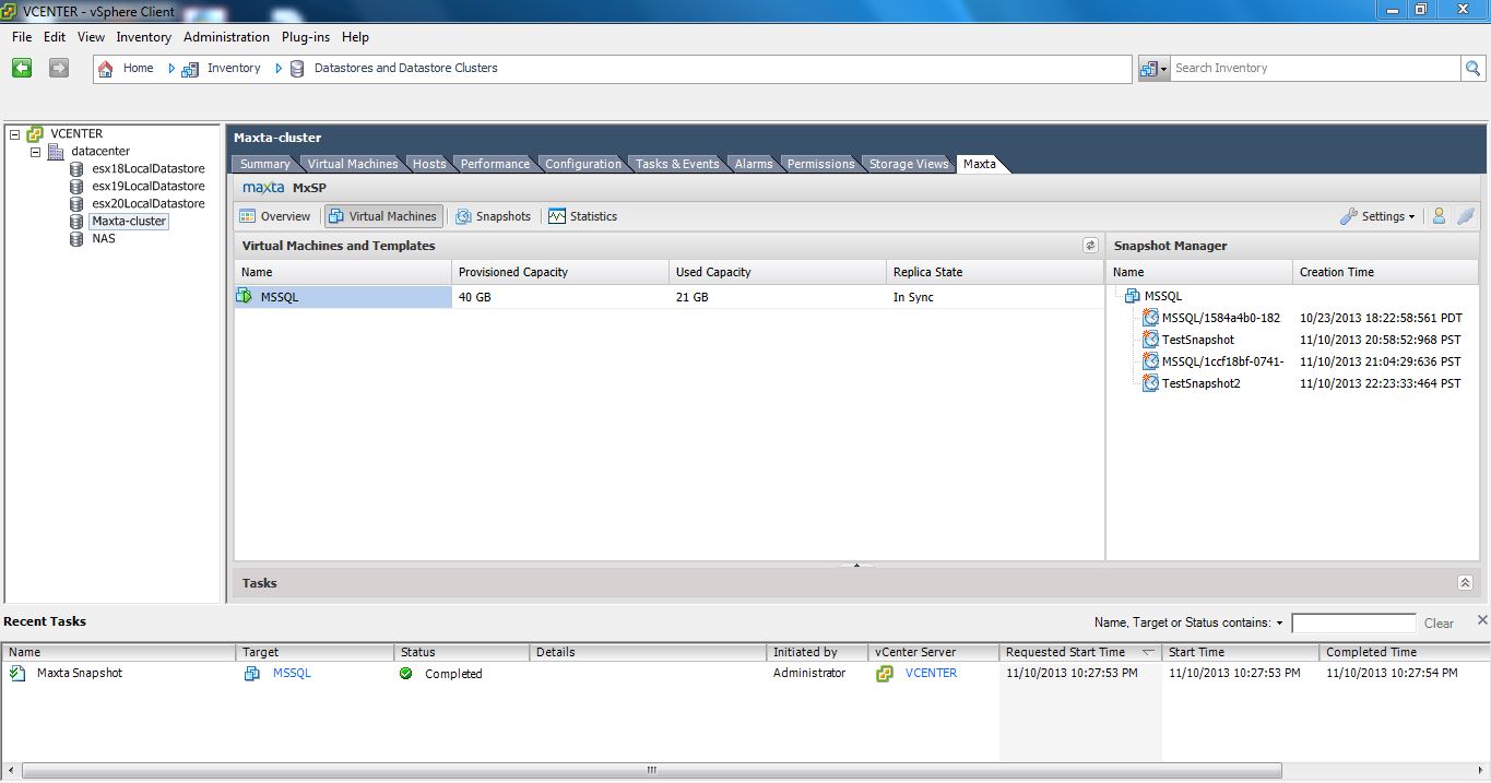 I think one of the best things about this solution is the fact that Maxta doesn’t worry about managing the datastore, so much as the Virtual Machine itself. Many storage devices can take VM snapshots, but end up taking a Snap of the entire volume or LUN. Maxta focuses on the VM itself as the storage unit, similar to Tintri.
