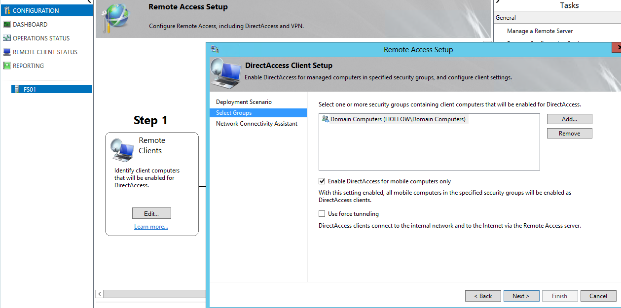 The install of Direct Access was surprisingly simple.