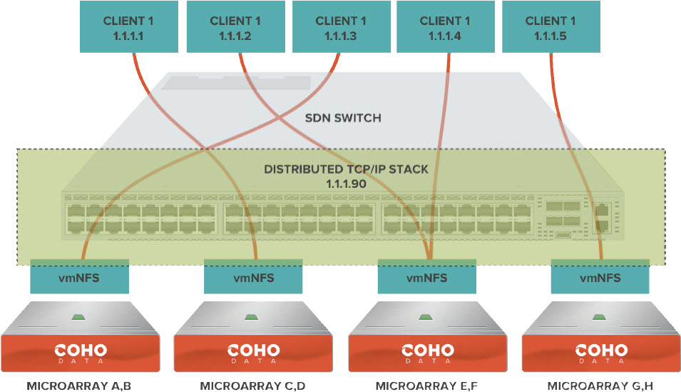 My focus is to look at how the NFS microarrays scale out with a single IP Address. The thing that REALLY caught my attention during Andrew Warfield’s presentation was that each of the 10Gb Nics have the same IP Address. What!???