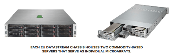 If you’re not familiar with them already, Coho Data has developed a very flexible scale-out architecture for a storage platform. If you’re running out of storage or performance, you add a new node and move on. Each one of these Datastream chassis has two controllers called “microarrays” that manage the data.