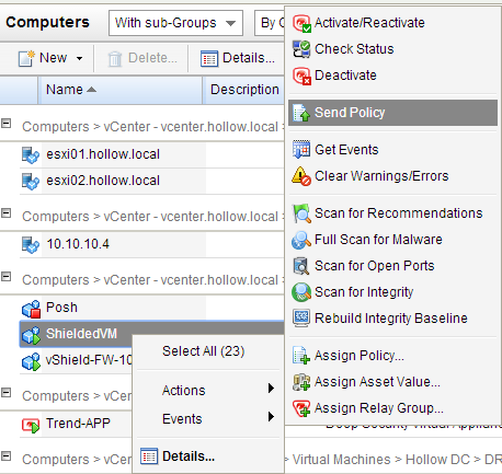 Once I’ve reviewed all the policies and modified what I needed to, the next step is to send the policy to your protected computers. Here, I’ve built a virtual machine called “ShieldedVM” for testing purposes. I have then pushed down the Server 2012 Policy to the VM.