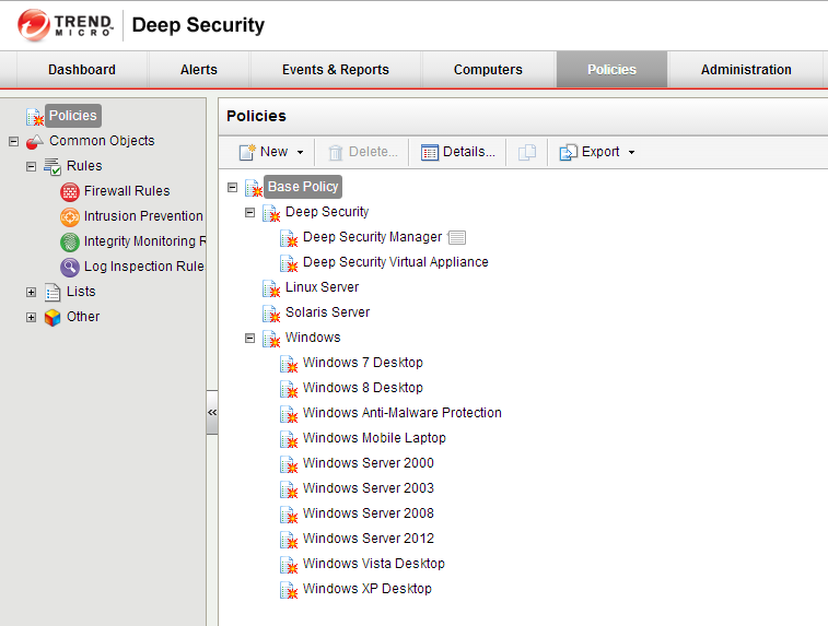 If we look at the Policies tab, we’ll see a number of Out Of The Box policies that are ready to go for a variety of Operating Systems. These base policies will give you a great start on securing your environment, but can always be tweaked to a configuration of your liking.