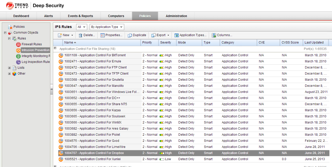 There are additional policies that can be added depending on your security requirements. The Intrusion Prevention policies allow you to use heuristics to determine traffic flows in your environment. The example below looks for dropbox traffic. NO SHADOW IT HERE!