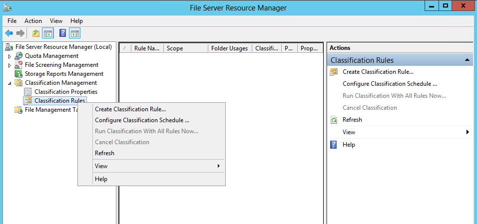 From within File Server Resource Manager (FSRM) go to Classification Rules and choose to “Create Classification Rule…”