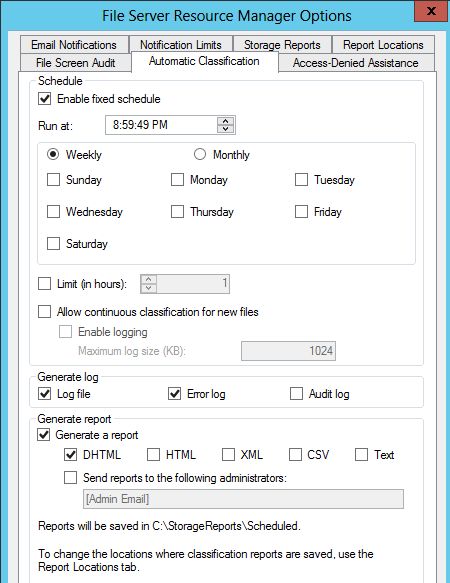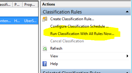 Once the classification rule is configured, you can either setup a schedule, or run the classification process any time from the FSRM console.