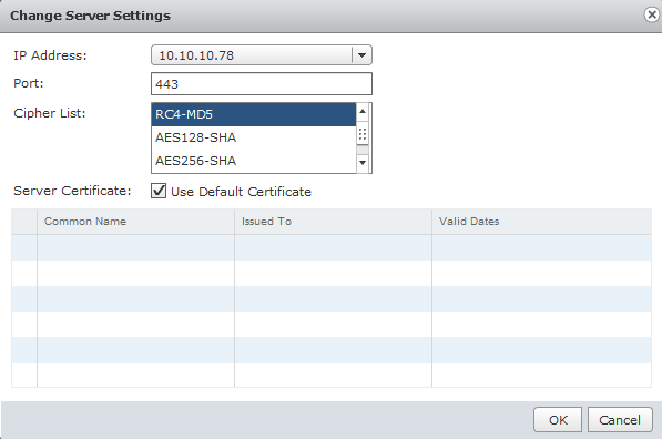 Select the external IP address of the appliance that you wish to use as the VPN endpoint. This doesn’t necessarily mean that this is the default external IP address of the gateway. You are allowed to change the port number if you wish, but the default is 443. You are also allowed to change the cipher list to something more secure. Since this is a lab, I’ve used RC4 and MD5. For production uses, it may be advisable to use AES and SHA. Lastly, you can use the default certificate or use a Trusted Certificate Authority. The latter would be recommended for a production environment.