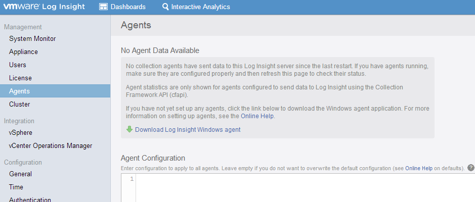 Next, if you wish to use Log Insight to monitor your Windows Servers, you can download an Agent which comes in the form of an MSI. Neatly packaged for deployment!