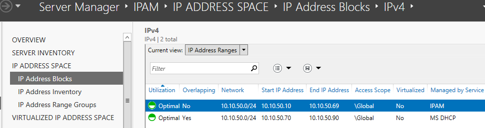 Once your IPAM server is setup, make sure that you create an IP Address Range, like the one below.
