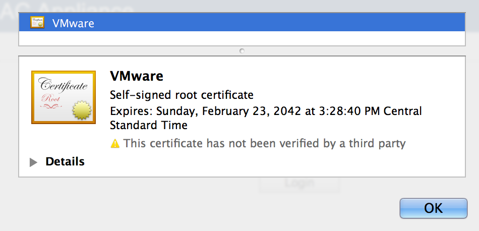You can see when I go to the appliance, I was getting a warning on the SSL Certificate.