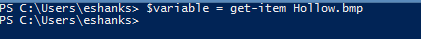 If I open up a PowerShell window, I can take this object and put it into a variable for future use. Let’s try it with a file called “Hollow.bmp” which is just a bitmap picture of the theITHollow.com logo.