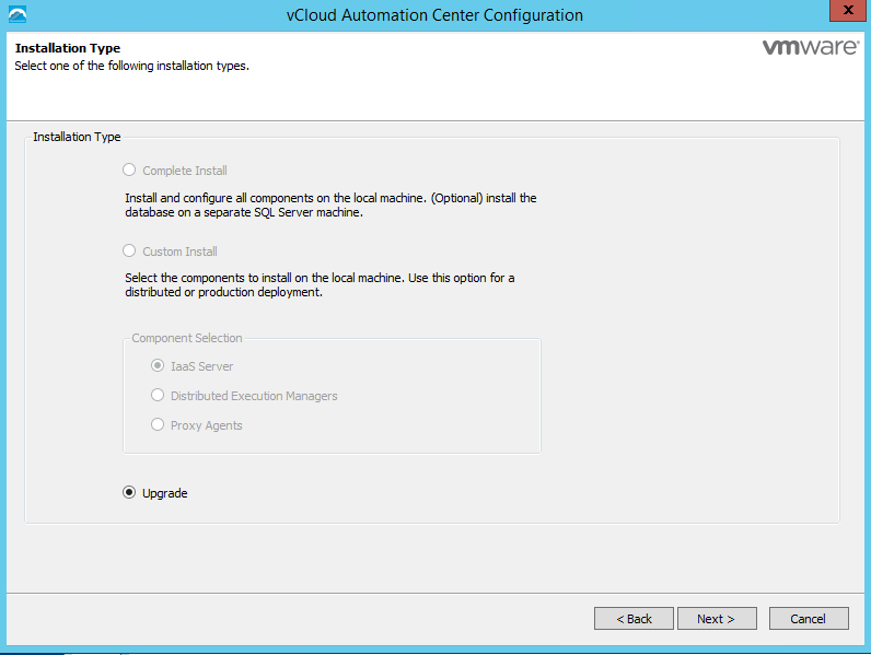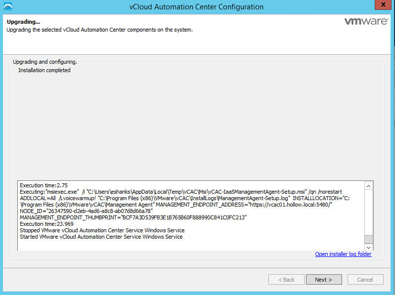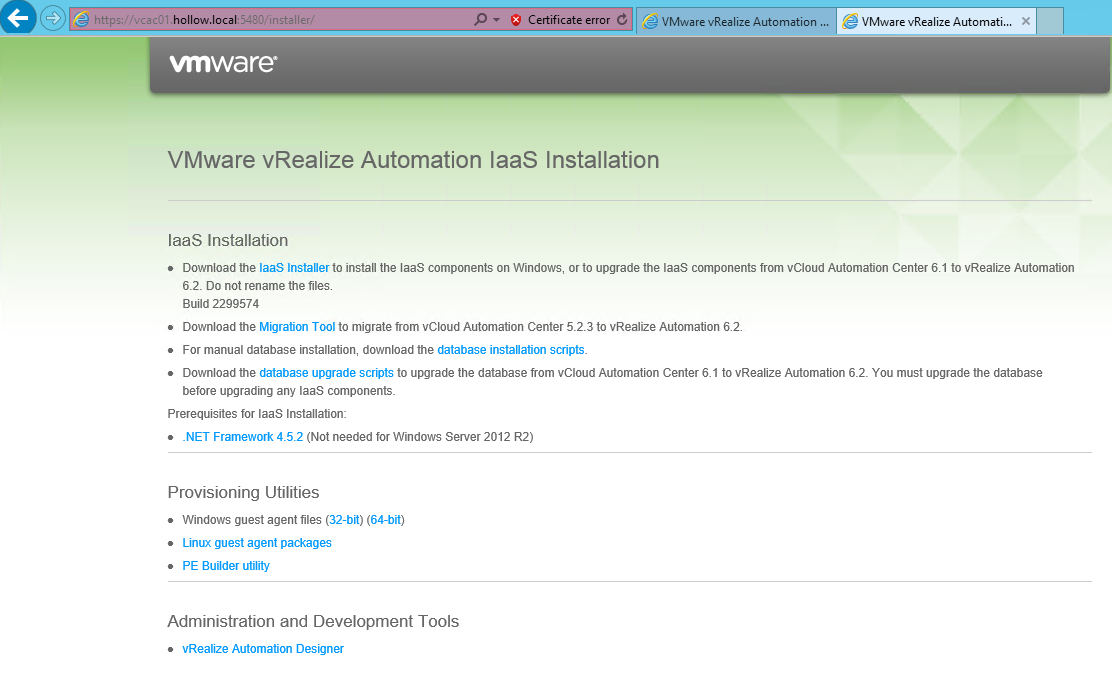 Now that the database upgraded successfully, we can go back to the vCAC appliance page and download the IaaS Installer to our IaaS server(s). Run the installer from an elevated session on the IaaS Server(s).