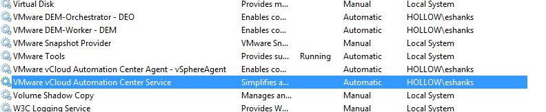 Next, stop the vCAC services on the IaaS Host(s). The recommend stop order is below: