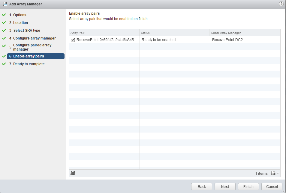 Choose the Protected site and the that it’s an Array Based Pair. Select the pair.