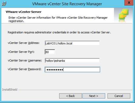 Enter the vCenter credentials to register with the vCenter server.
