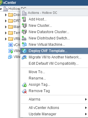 Now we will navigate to our new cluster, right click and choose “Deploy OVF Template”. Choose the file location that you exported the vApp to.