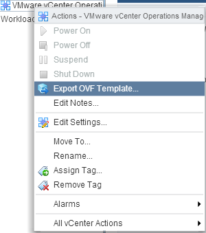Now, we can export the vApp to an OVF by right clicking on the powered off vApp and choosing “export OVF Template”. Save it to someplace on your hard drive.