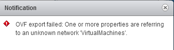My first attempt was to export the vApp to an OVF file and reimport it to the new cluster which failed with an error.