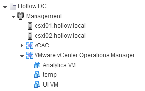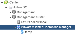 Now that we’ve imported the vApp to the new cluster, you’ll have your temp virtual machine still in the vApp. We need to move the UI VM and Analytics VM back to this new vApp.