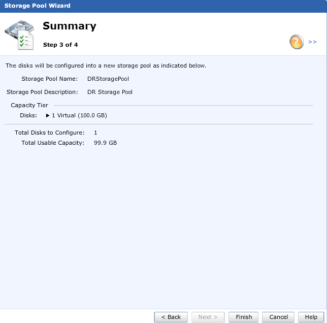 Give the pool a name. This is my Disaster Recovery appliance so I called it DRStoragePool. (Clever don’t you think)