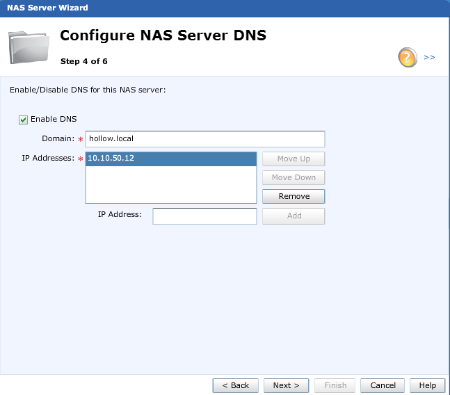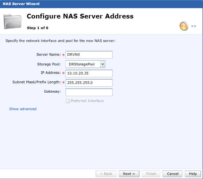 Give the NFS Server a name and point it to a storage pool created earlier. Enter an IP Address for the NAS appliance and click next.