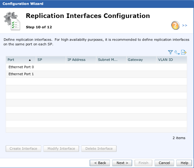 Back to the original wizard, we can choose to setup replication interfaces. I skipped this step and will revisit it later if I need it.