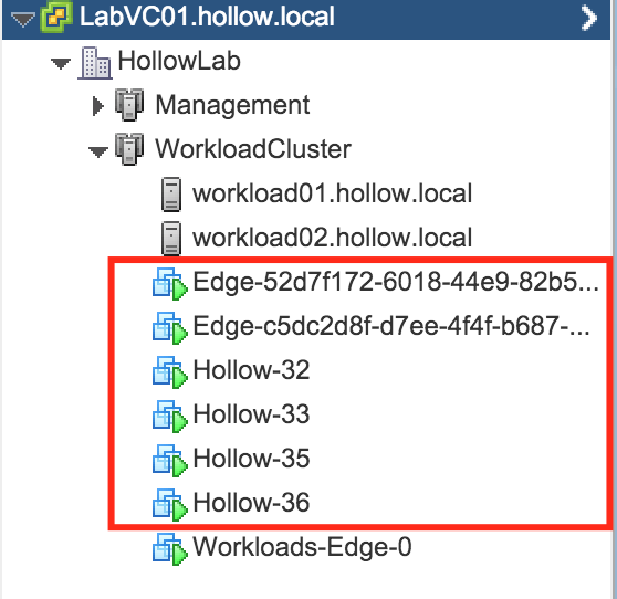 In my vRA workloads cluster, I’ve got my new pair of NSX edges and a two pair of virtual machines that are part of my NAT test.