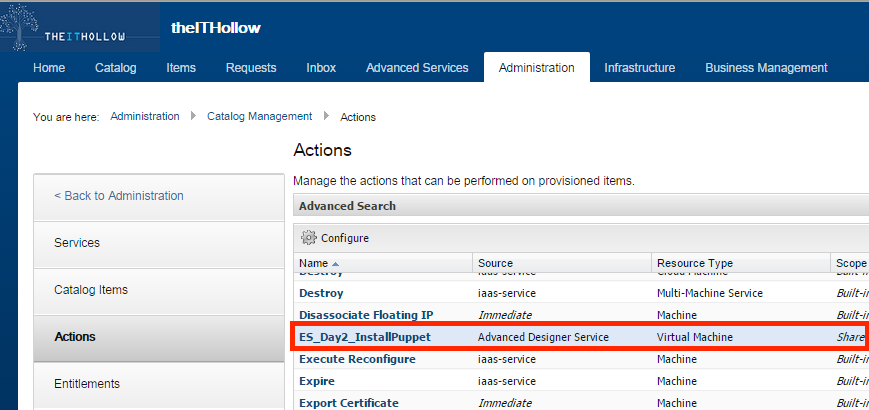 Just deploying virtual machines in an automated fashion is probably the most important piece of a cloud management platform, but you still need to be able to manage the machines after they’ve been deployed. In order to add more functionality to the portal, we can create post deployment “actions” that act on our virtual machine. For instance an action that snapshots a virtual machine would be a good one. We refer to these actions that take place after the provisioning process a “Day 2 Operation”, probably because it’s likely to happen on the second day or later. Clever huh?