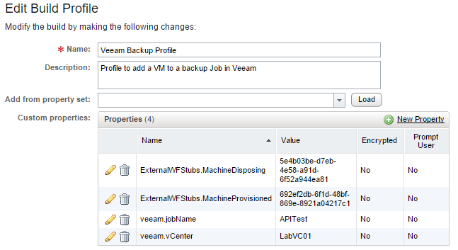 If you want to leverage vRealize Automation to have your VMs automatically added to a backup job after provisioning and removed during deprovisioning, then go to the vRA_Setup folder and run “Veeam_CreateBuildProfile”.
