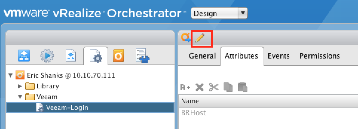 Once the Veeam REST Host has been added, go to your list of configuration elements. Find the “Veeam-Login” config item and click the pencil icon to edit it.