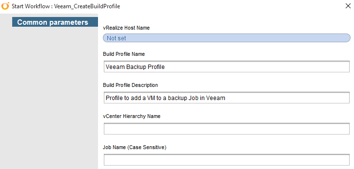 Provide the vRA Host, the build profile name and description and then the vCenter Name and Backup job that you’d want to add VMs to. Feel free to add multiple profiles if you have more than one backup job, just be sure to change the profile name and job.