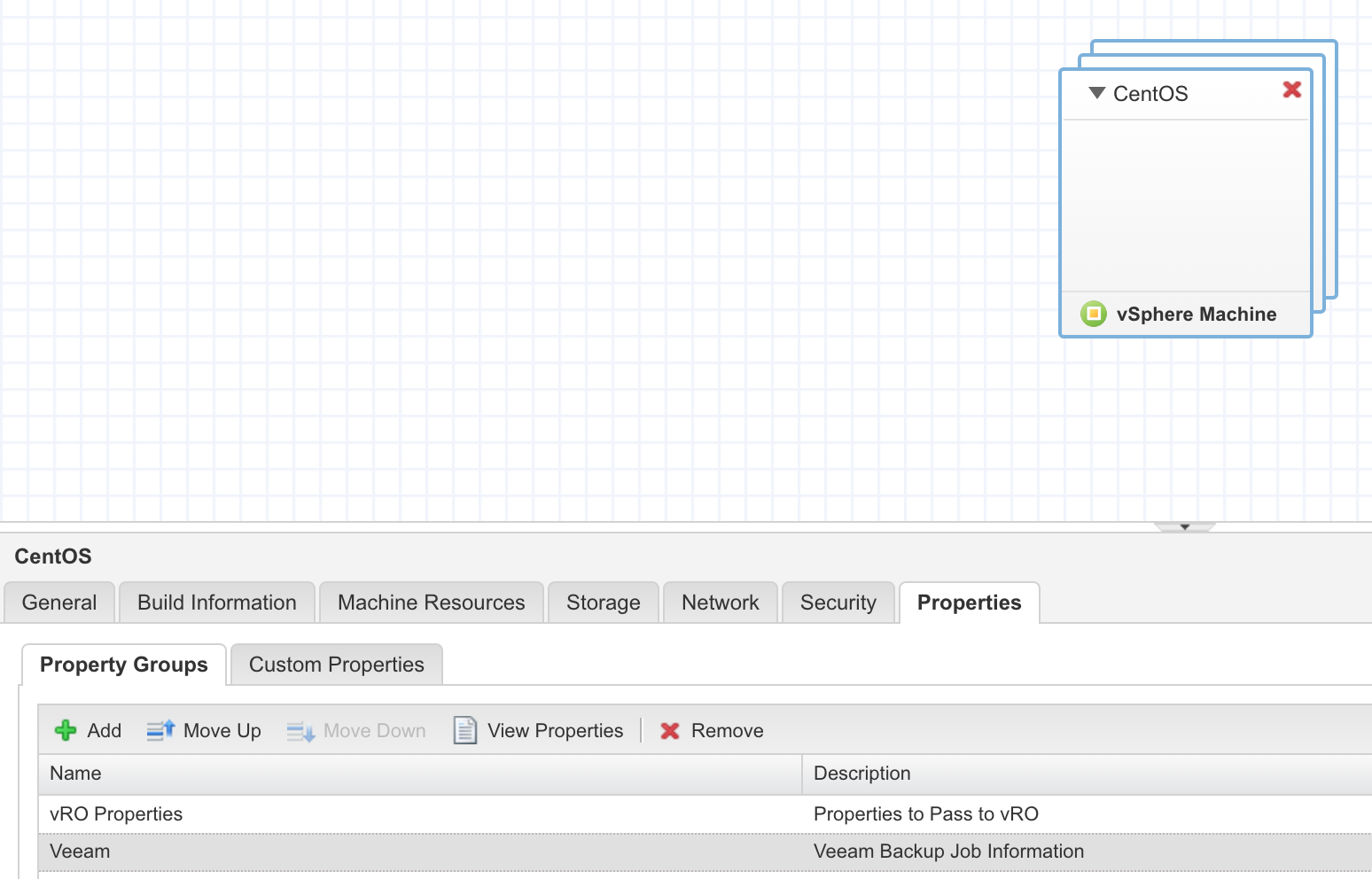From there, you can add the property group to any of your virtual machines in the design canvas. Be sure to set your vRO properties so that vRA is passing properties over to vRO during the machine provisioning events.