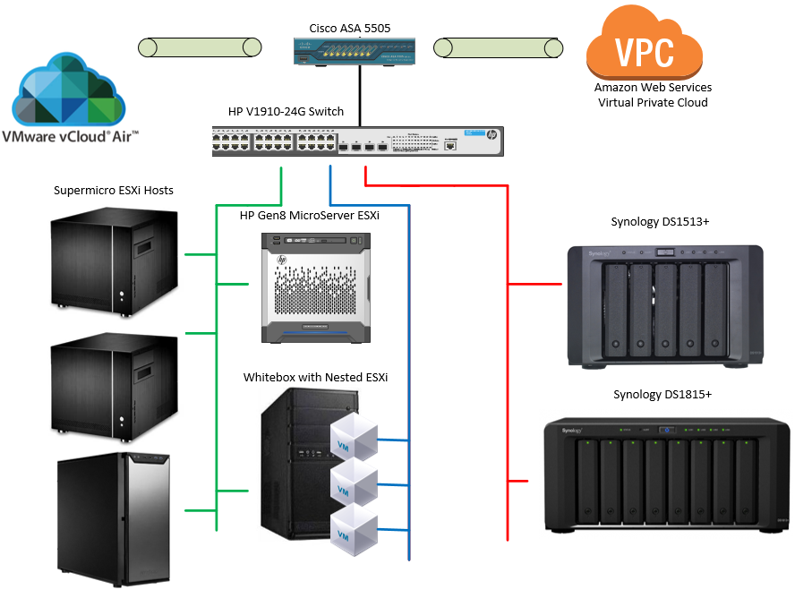 Licensing costs are going to vary quite a bit. In my case I have the Microsoft Action Pack which is a yearly subscription that gets me all of my server licenses for lab use. I’m also a VMware vExpert which gets me vSphere licenses. If you’re not a vExpert, I highly recommend paying for VMUG Advantage which will get you VMware licenses in addition to other certification and VMworld benefits.