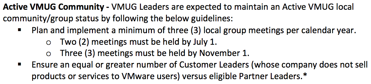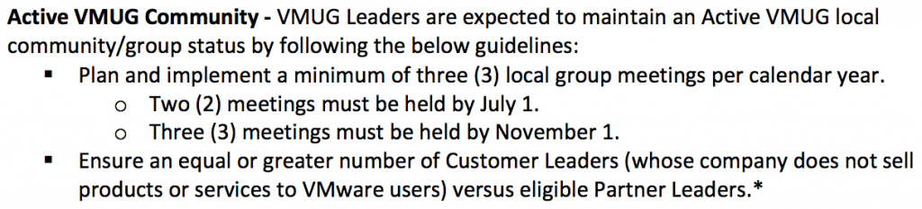 Last year I saw a significant drop in attendance for many VMUGs across the US and we certainly had more difficulty securing sponsors for our meetings. I worry that excluding other companies will make the group meeting even more difficult to organize.