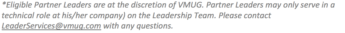 VMUG has a specific Leader Guidelines document that was update on January 1st of 2017. There are no mentions of any companies being denied the ability to be leaders unless there are violations which are clearly listed: