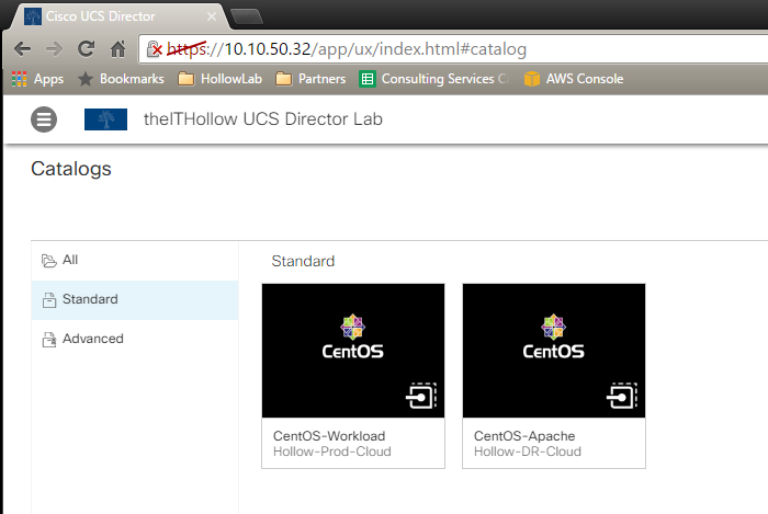 Once logged into the the user portal, look for a folder with your catalog requests in it. In the examples we’ve used in this series, I’ve got a folder called “Standard”. Click your folder.