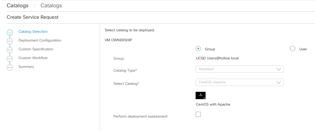 As part of the standard request forms, select who will own the virtual machine. This could be the specific user, or a group of users who may roll back the requests and manage the VM later. Make your decision and click “Next”.
