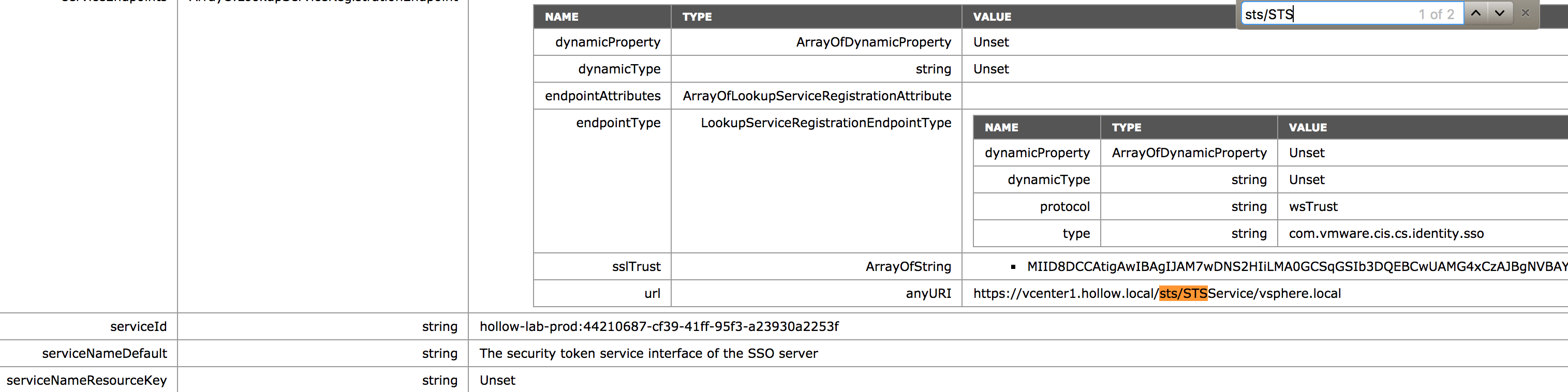 While the KB article does an adequate job of describing the fix, hopefully my screenshots will help add some additional color if you’re trying to go through the same thing. The first thing you want to do is go to your PSC’s managed object browser to find the old fingerprint. To do this go to https://PSCADDRESS/lookupservice/mob?moid=ServiceRegistration&method=List in a web browser.