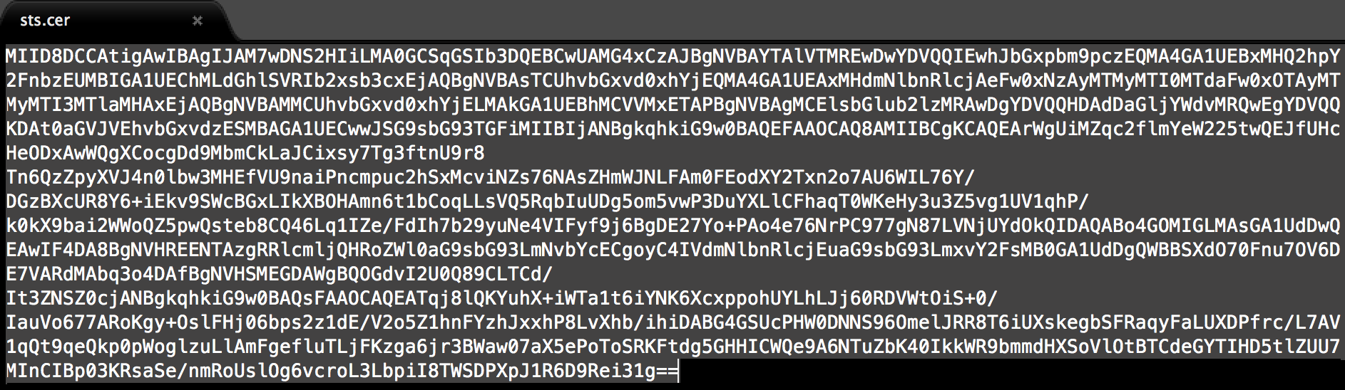 Open up a text editor and paste this string into the file and save it as sts.cer someplace safe.