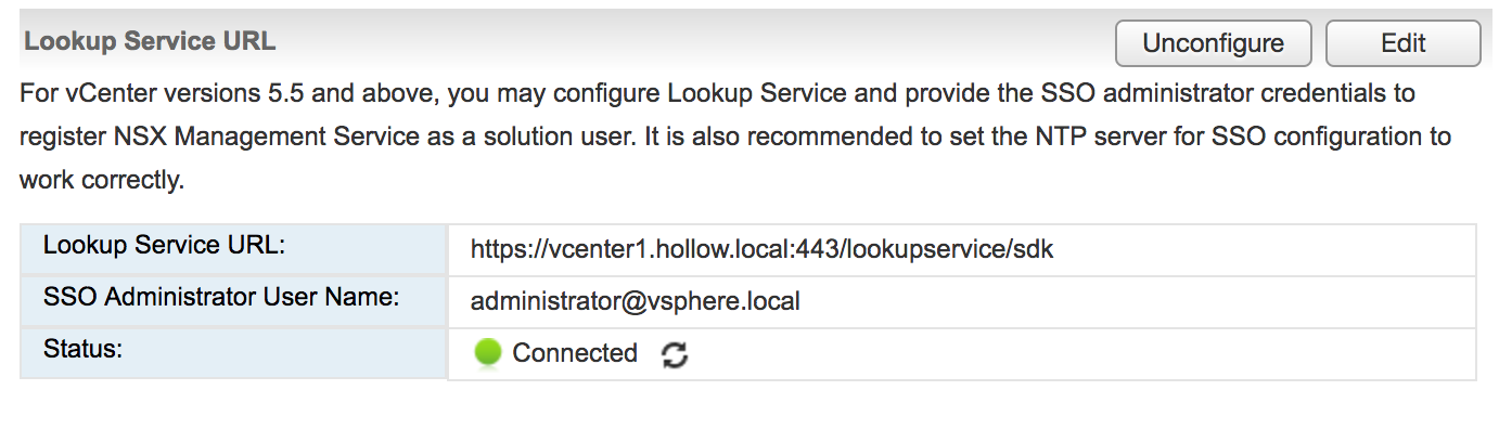 Once I ran through the steps, I was able to successfully connect NSX to my lookup service again.