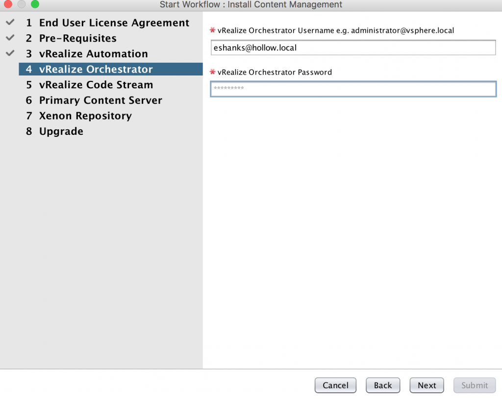 Next enter the vRealize Orchestrator username and password. I’ve changed my authentication groups from the default so yours might still be [email protected].