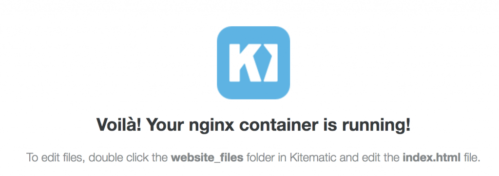 If you then go to the web address of the container, you’ll see that my container is running, although only a simple hello-world container running nginx.